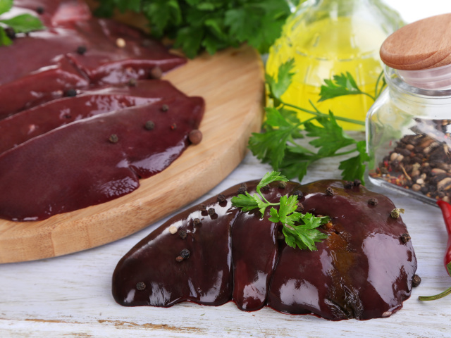 Свежая печень должна быть равномерного красно-коричневого цвета без пятен и неприятного запаха. Если субпродукт заморожен – размораживайте только в холодильнике, никогда при комнатной температуре.
